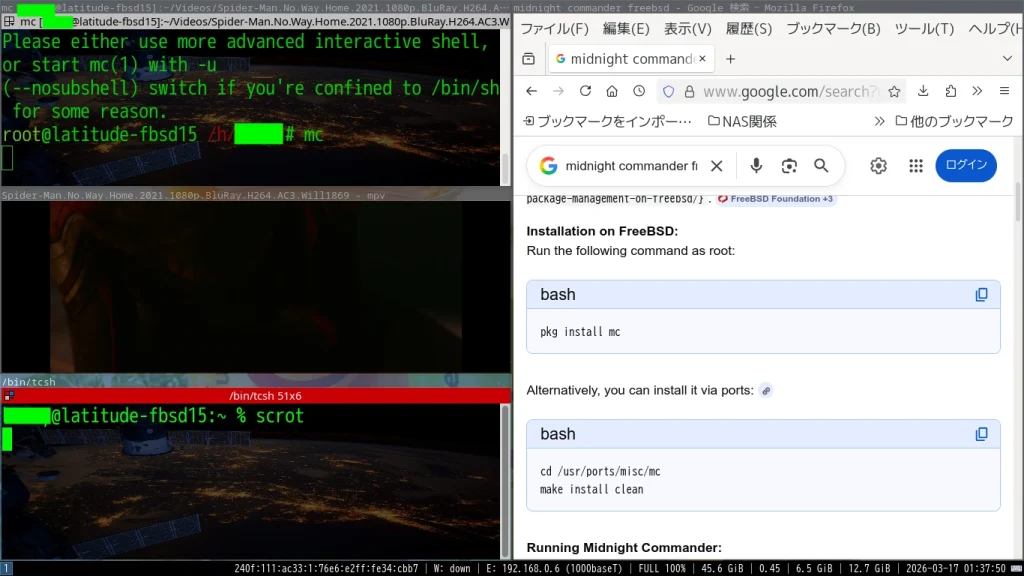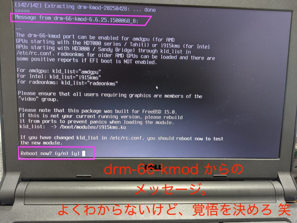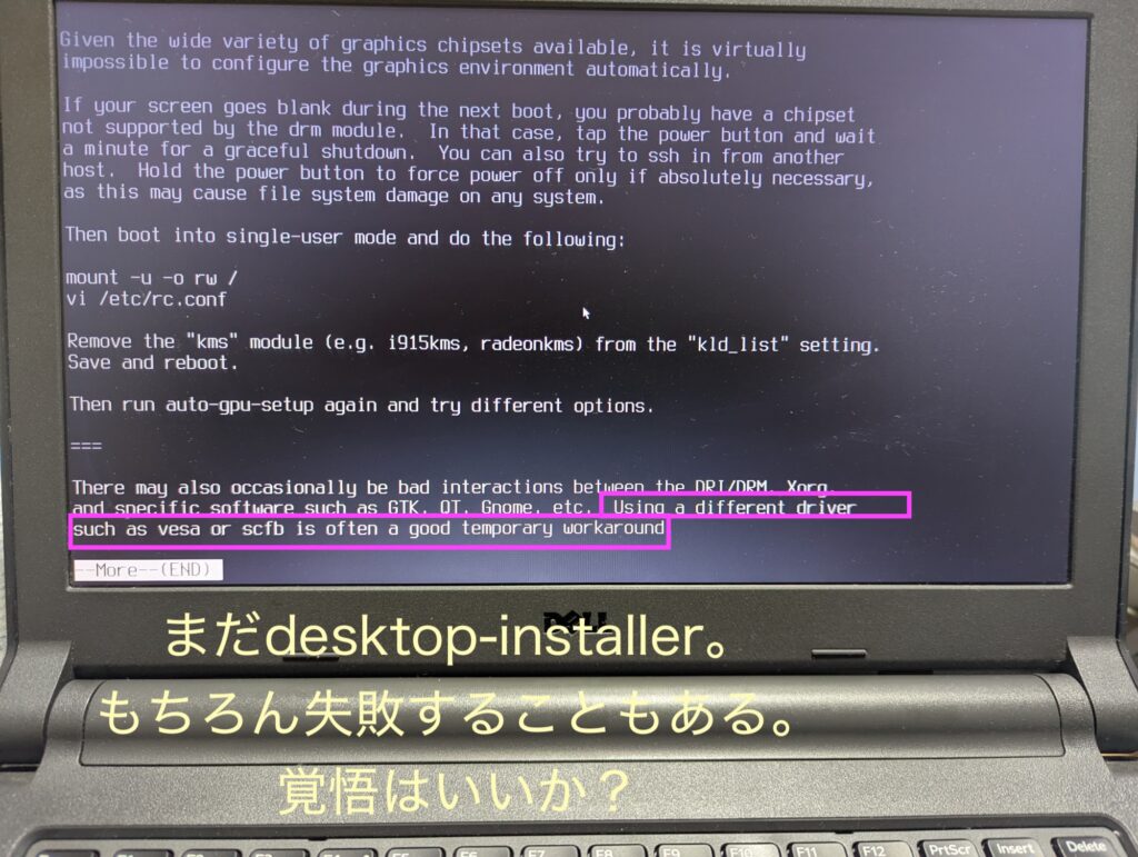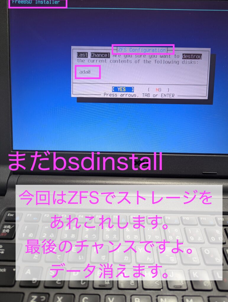 やはり、NomadBSDやGhostBSDなしで素手でFreeBSDをインストールするときは、ドキドキします。