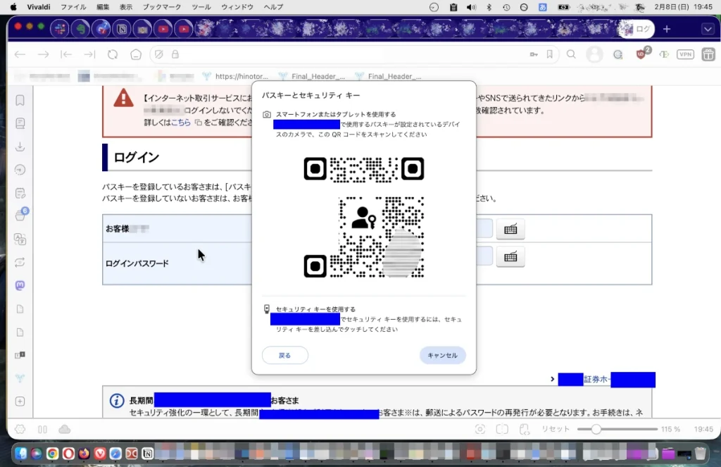 2026年2月9日月曜日になりました。パスキー三番勝負をやった証券会社各社にログインしてみましたが……。